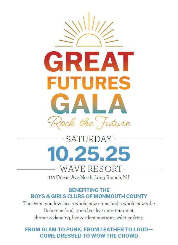 The Boys & Girls Clubs of Monmouth County is thrilled to introduce the Great Futures Gala: Rock the Future presented by Apollo, Crum & Forster, and Morgan Stanley Private Wealth Management, a bold new evolution of our signature annual event. On Saturday, October 25th from 7 - 11 PM at Wave Resort, we're turning up the volume for an electrifying night of music, dancing, and making a difference.