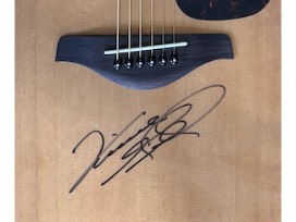This stunning acoustic guitar is hand-signed by country music legend Vince Gill, a 22-time Grammy Award winner and member of the Country Music Hall of Fame. Whether you're a lifelong fan, a collector of musical memorabilia, or simply love a great conversation piece, this one-of-a-kind item is sure to hit the right note.