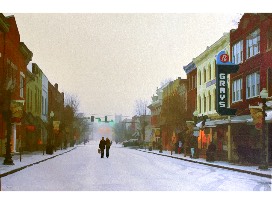 A Franklin, Tennessee based photographer, Smartt's says her most iconic shot is titled, "Snow on Main," which features a couple, walking arm in arm down the middle of an iced over Main Street. The image has a giclee, washed over effect, created in post-production with a timeless feel to it.