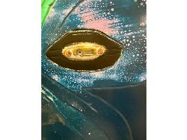 Cuban artist, Rey D'Alfonso pays homage to one of his favorite creatures, the chinook salmon. Symbolic of strength, resilience & determination. Known for its incredible journey upstream to spawn, this majestic fish is a reminder that we can overcome any obstacle. Mixed media on carved birch with a vintage bronze "skipper" plaque, copper rivets & an antique keyhole for its eye.
