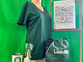 Put a bow on your 4-H outfit with this 4-H Bow Side Split Performance T-Shirt. Pick Your Size - available in Women's S-3X, shown in M). Bundle features a "Friends are like Clovers" tea towel, I <3 4-H drawstring backpack and stainless steel tumbler.