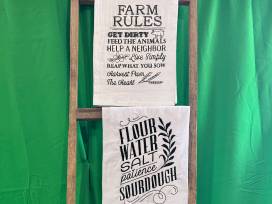 You'll be ready to go to market with this large beautiful tote from Sew Goddess Creations. Enjoy the fun pair of tea towels in the kitchen with wooden board and some fun farm fresh decor.