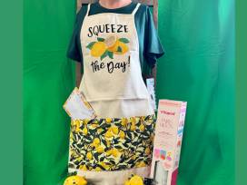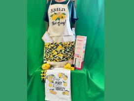 This bright, fun bundle includes embroidered apron and tea towel from Sew Goddess Creations. With some fun goodies and a Vitapod to infuse some lemon in your water!