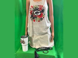 Ruched racerback tank (Women's Large) with Football earrings, Cherry Tree Collection Black Mala necklace and tumbler so you're tailgate ready thanks to Little Roost Designs and Sew Goddess Creations.