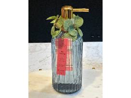 It's paired with a ribbed glass bottle of soothing sage & lavender hand soap and a hand-thrown ceramic vase (5" x 3") in serene green tones. A blend of beauty and function for any countertop or vanity.