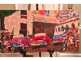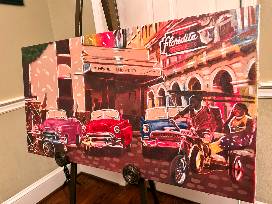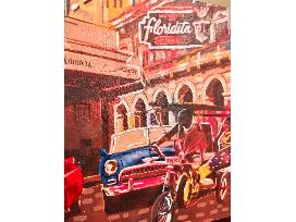 Bring the vibrant & colorful spirit of Cuba into your home with this striking hand-painted canvas, stretched and ready to display. Measuring 34" x 18", the artwork features three iconic vintage cars set against a colorful Cuban backdrop, capturing the island's charm and nostalgia.