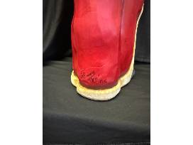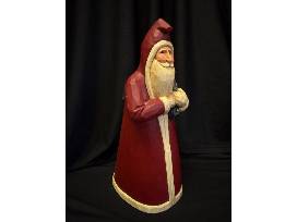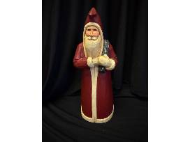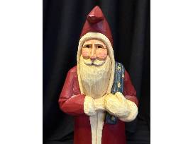 The first Santa is 16.5 inches tall, handmade, signed, dated and numbered by artist Bill Evans. With its bright red suit and gnome like hat, it will definitely be a charming boost on your mantel or wherever it is placed.