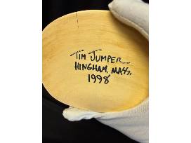 The second Santa is 9 inches tall, handmade, signed and dated by artist Tim Jumper. This Santa is a unique juxtaposition of a traditional Old World Santa and Folk Art.
