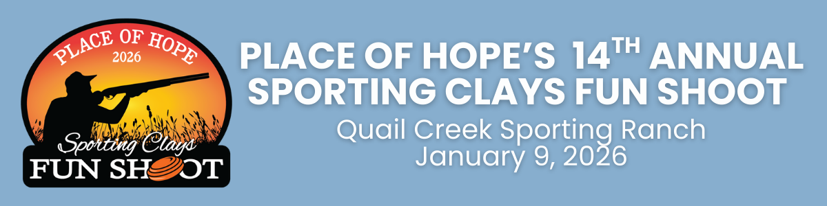 Place of Hope's 14th Annual Sporting Clays Fun Shoot is the largest charity fun shoot in the state bringing together over 350 shooters to raise critical funds for local foster children, homeless youth, single mothers with dependent children and human trafficking survivors. Known to be one of the most well-run shoots, this fun shoot offers shooters of all ages, skill levels and professions a great day of camaraderie, friendly competition, breakfast, lunch, awards, raffle and a live auction!