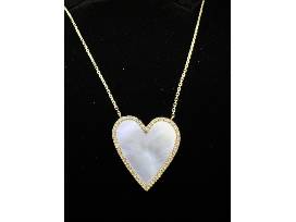 A timeless expression of love and elegance, this 14kt yellow gold necklace features a luminous mother of pearl heart, delicately framed in 0.12 ct of diamonds, adding a subtle sparkle that enhances the natural iridescence of the mother of pearl. Versatile with the ability to wear at 18 inches or 16 inches in length, this piece is designed for everyday wear or as a cherished gift.
