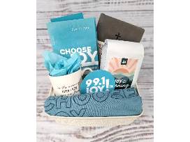 Extra Bonus, a basket full of JOY FM devotionals, mug, Joy Blend Coffee, and t-shirt just for you!