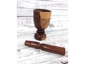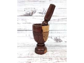 Hand carved in Zambia. Enjoy this teak mortar & pestle for all your crushing, grinding, and mixing needs.