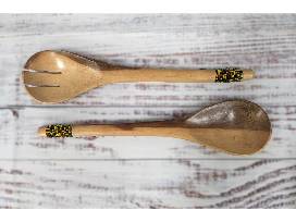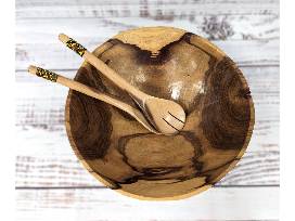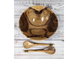 Bowl measures 14" diameter and pairs perfectly with serving spoons measuring 12" long.