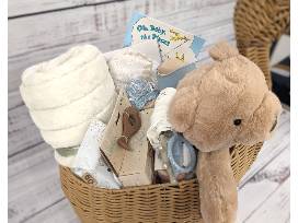 Welcome a sweet baby boy with this thoughtfully curated "Little Explorer" gift basket, filled with essentials for both baby and parents. Packed inside an adorable giraffe-themed storage basket, you'll find soft and stylish baby clothes, cozy blanket, and must-have baby care items.