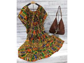 Celebrate global craftsmanship with this stunning, custom-made adjustable Chitenge dress, beautifully handcrafted leather purse and dangle earrings, all made in Africa. Vibrant, bold, and one-of-a-kind, the dress features traditional African fabric and an adjustable fit for comfort and style. The leather purse adds timeless elegance-perfect for any occasion.