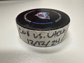 12.12.24 Colorado Avalanche vs. Utah Hockey Club Nathan MacKinnon Goal Puck.