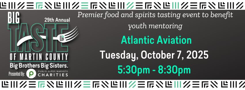 Click HereIntroducing The Big Taste of Martin County: The Premier Food and Spirits Tasting Event on the Treasure Coast, hosted by Big Brothers Big Sisters of Palm Beach and Martin Counties and Presented by Publix Super Markets Charities! This year, we are thrilled to celebrate our "120 Year Celebration" alongside this grand event.