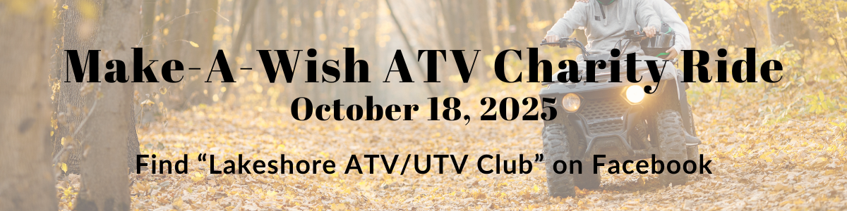 VIEW ITEMSThe Lakeshore ATV/UTV Club will host the 18th Annual ATV/UTV Charity Ride on October 18, 2025 at the Random Lake Rod & Gun Club in Fredonia, WI. Again, this year we will be raising money for Make-A-Wish Wisconsin.