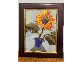 Bring warmth and elegance to your space with this stunning 12x16 framed oil painting featuring a vibrant sunflower in a classic vase. Rich in texture and color, this original artwork captures the timeless beauty of nature and adds a cheerful touch to any room.