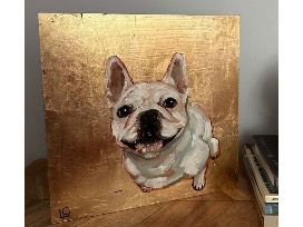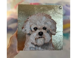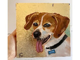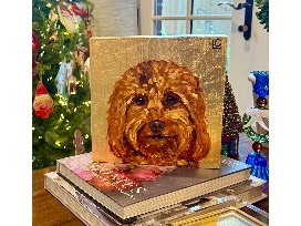 This package features a 12x12 custom pet portrait, beautifully hand-painted to capture your pet's personality, charm, and unique spirit donated by Lacey Cain Art.