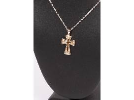 14k yellow gold and sterling silver Filigree Cross with sterling silver chain 18 inches.