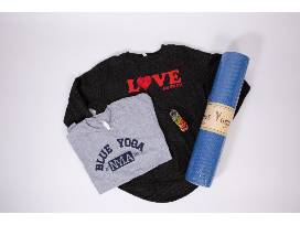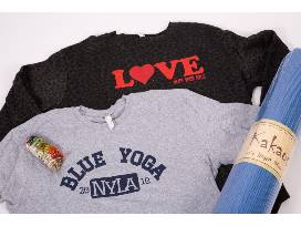 This package includes six months of unlimited yoga classes to Blue Yoga Nyla, a Kakoa's yoga mat, a Limited Edition Blue Yoga Nyla sweatshirt (medium) and T-shirt (large).
