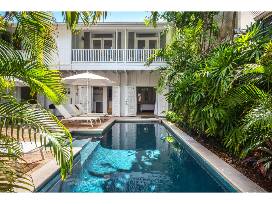- Features 3 bedrooms, a large pool, and a lush tropical courtyard.