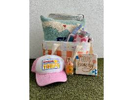 - Laurel & Jack pillow, Stanley cup, matches, cocktail napkins, hat, beach towel, Sunny Life cooler bag