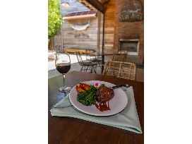 -8 entrees, 4 apps, 4 desserts, and 4 Bottles of Caymus or cost equivalent in beverages.