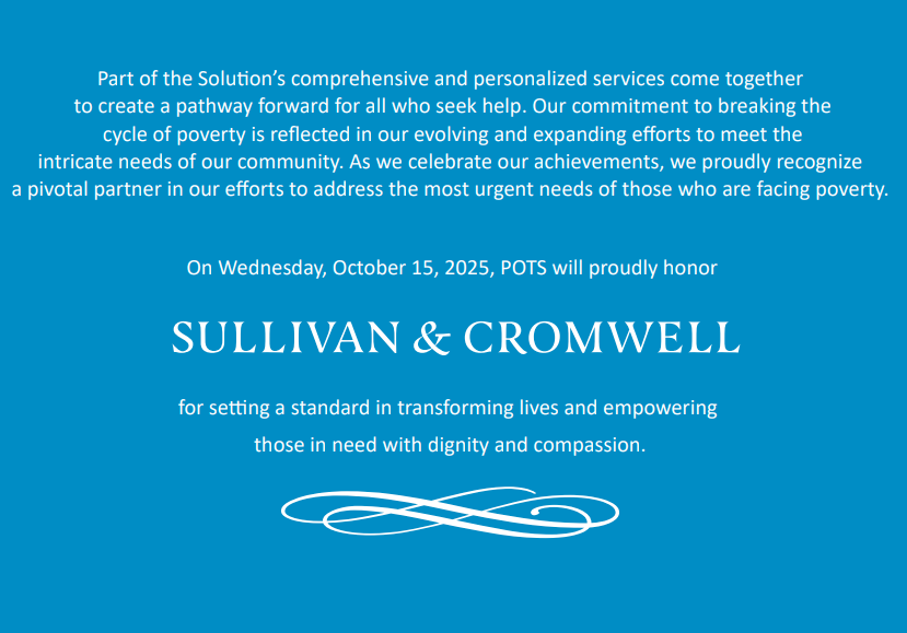 About Part of the Solution (POTS): Founded in 1982 and based in The Bronx, POTS offers a mosaic of services which come together to create a pathway forward for all who seek help. Through our comprehensive and personalized approach, we listen to the needs of our community and we seek to provide clients with the widest variety of services possible under one roof to help them in their journey to stability. POTS serves more than 34,000 low-income people annually under three programmatic pillars.