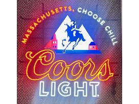 Light up your space with this eye-catching Coors Light Neon Sign featuring the bold Massachusetts - Stay Chill design. Perfect for adding personality and a laid-back vibe, this bright neon piece makes a standout addition to any man cave, bar area, dorm room, garage, or entertainment space.
