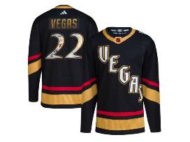 This is the actual Adidas Authentic On-Ice jersey with the "VEGAS" lettering that glows in the dark-nearly impossible to find and not available in stores. Men's size 54.