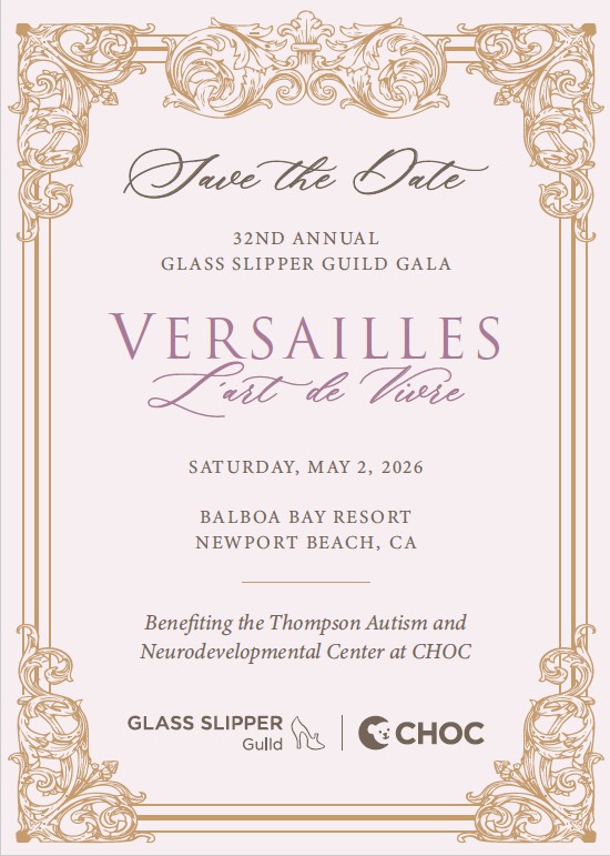 The Glass Slipper Guild Gala is our largest fundraising event of the year and raises critical funds for the Thompson Autism and Neurodevelopmental Center at CHOC. This year, we invite you to experience Versailles: L'Art de Vivre - "the art of living beautifully." Inspired by the French philosophy of celebrating life with joy and gratitude, the evening honors resilience, progress, and the beauty of life in all its complexity.