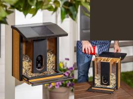 A tech-lover's dream! This cedar hut-style feeder features a 1080p HD WiFi camera with AI bird ID capabilities. Watch real-time visitors on your phone, powered by the sun and featuring a predator alarm for safety!