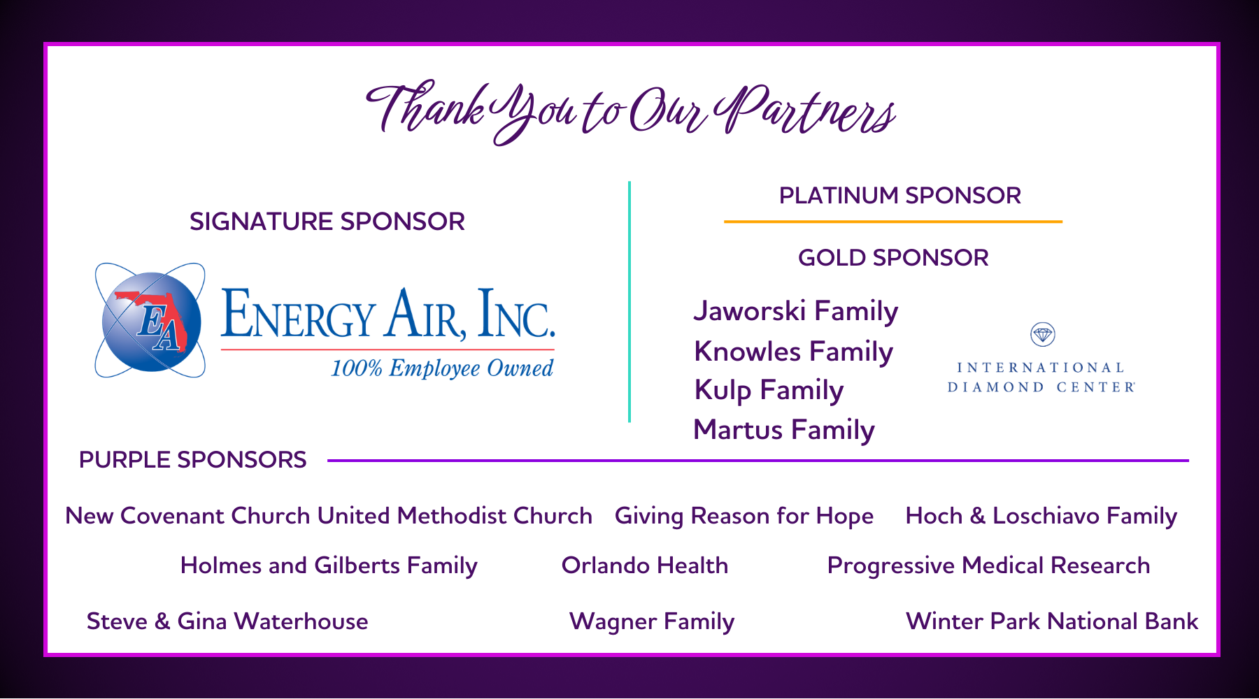 Be part of an unforgettable evening at the Purple Soirée: Electrifying Change, where Greater Orlando's most passionate community and business leaders unite to honor those impacted by dementia and ignite a powerful movement for progress.