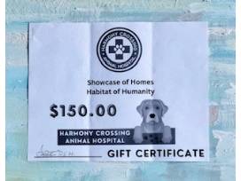 Spoil your furry friend with a $150 gift card from Harmony Crossing Animal Hospital for goods or services.