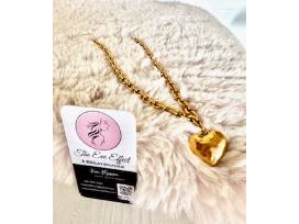 A stunning piece that adds elegance to any outfilt. A great opportunity to treat yourself or someone special. The necklace is a 16" handmade 18K gold-plated stainless steel link necklace with 18K gold-plated stainless steel heart pendant. The necklace is tarnish-resistant.