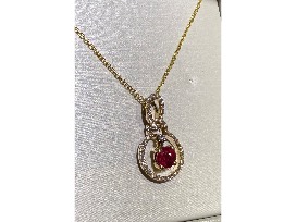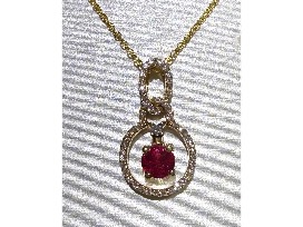 This elegant and timeless, 18-inch necklace from Whidby Jewelers in Madison, GA is 14 karat gold and features a stunning .84 total carat weight round brilliant-cut ruby and .84 total carat weight of round-cut diamonds (G-H color, SI1 clarity). It's the perfect statement for both everyday sophistication and special occasions.