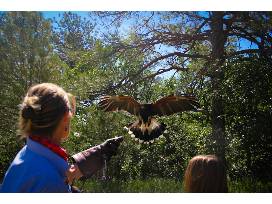 Beginner lesson where your guests will have a chance to spend time in a small group setting with a falconer and several birds. Guests will have a chance to see hawks, falcons and owls. After discussing the birds and their natural history, guests will enjoy viewing them in flying action and have the opportunity to don a falconry glove to have their photo taken with a trained bird of prey.