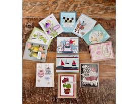 Inside your one-of-a-kind basket, you will find 12 hand made greeting cards for various occasions. All materials used from Stampin Up! dies, punches, card stock and embellishments. Cards were created a local resident, Gunna Hazelrig.
