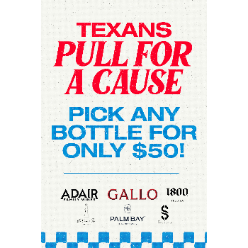 Pick any bottle for only $50, visit the Texans Pull For a Cause table across the Silent Auction Table.