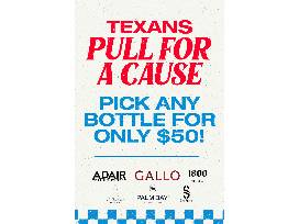 Pick any bottle for only $50, visit the Texans Pull For a Cause table across the Silent Auction Table.