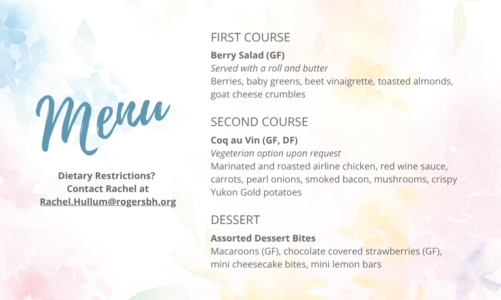 All proceeds from the Women's Gathering directly supports the Spiritual Care Program at Rogers Behavioral Health, a donor-funded initiative that helps patients incorporate faith and personal beliefs into their healing journey. This inclusive, no-cost program is open to patients at our Oconomowoc, Brown Deer, and West Allis locations. It is offered regardless of faith or worldview, providing essential support to those in need.