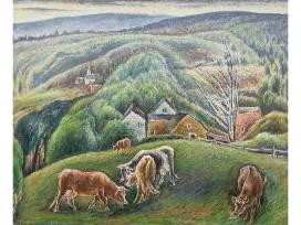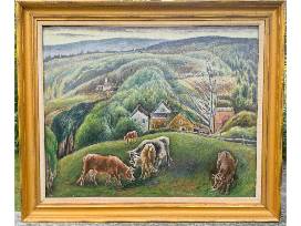 Cows in Pasture by Gertrude Nason (1890-1905) oil, 34 x 28 inches, 39 x 33 inches framed.