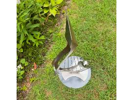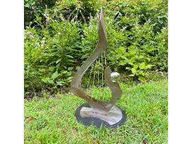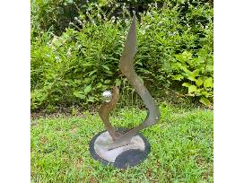 My Heart Will Go On by Gilbert Boro welded steel with a rotating base, 24 x 12.5 x 13.5 inches, 2018, may be displayed indoors or outdoors.