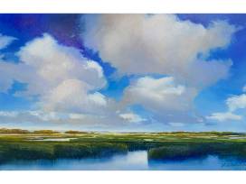 Robertson is a prolific, award-winning artist who paints luminous landscapes on aluminum and copper. Her paintings are known for their vibrant color, texture, and glow. Janine began her career as a muralist and trompe l'oeil painter but has turned her full attention to landscape oil painting. Her work hangs in private collections throughout the United States.