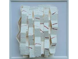 1Bundle by Pat Smith ink on torn pierced Arches cold-press paper, 9 x 9 x .5 inches, 17 x 17 x .5 inches framed. Valued at $1,250.