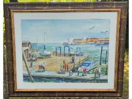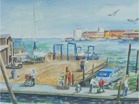 Boat Works by Dalia Ramanauskas watercolor, 24 x 18 inches, 27 x 33 inches framed.