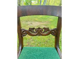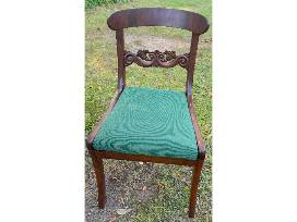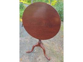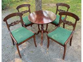 1This late 19th century Mahogany table and set of four chairs would make a perfect addition to your sitting room or breakfast nook. The table measures 28 inches high and 27 inches in diameter. Chairs measure 33 inches high overall, 18 inches to the cushion, 16.5 inches deep and 18.5 inches wide. Valued at $2,250.