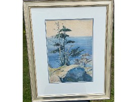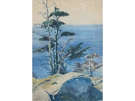After studying in Paris, Sears Gallagher became a well-known painter, etcher, and teacher in the Boston area. He frequented Monhegan Island and was much inspired by the surrounding landscape. He has over 200 etchings in the Metropolitan Museum of Art collection, in addition to the Boston Museum of Fine Arts, the Art Institute of Chicago, and the Honolulu Academy of Art.